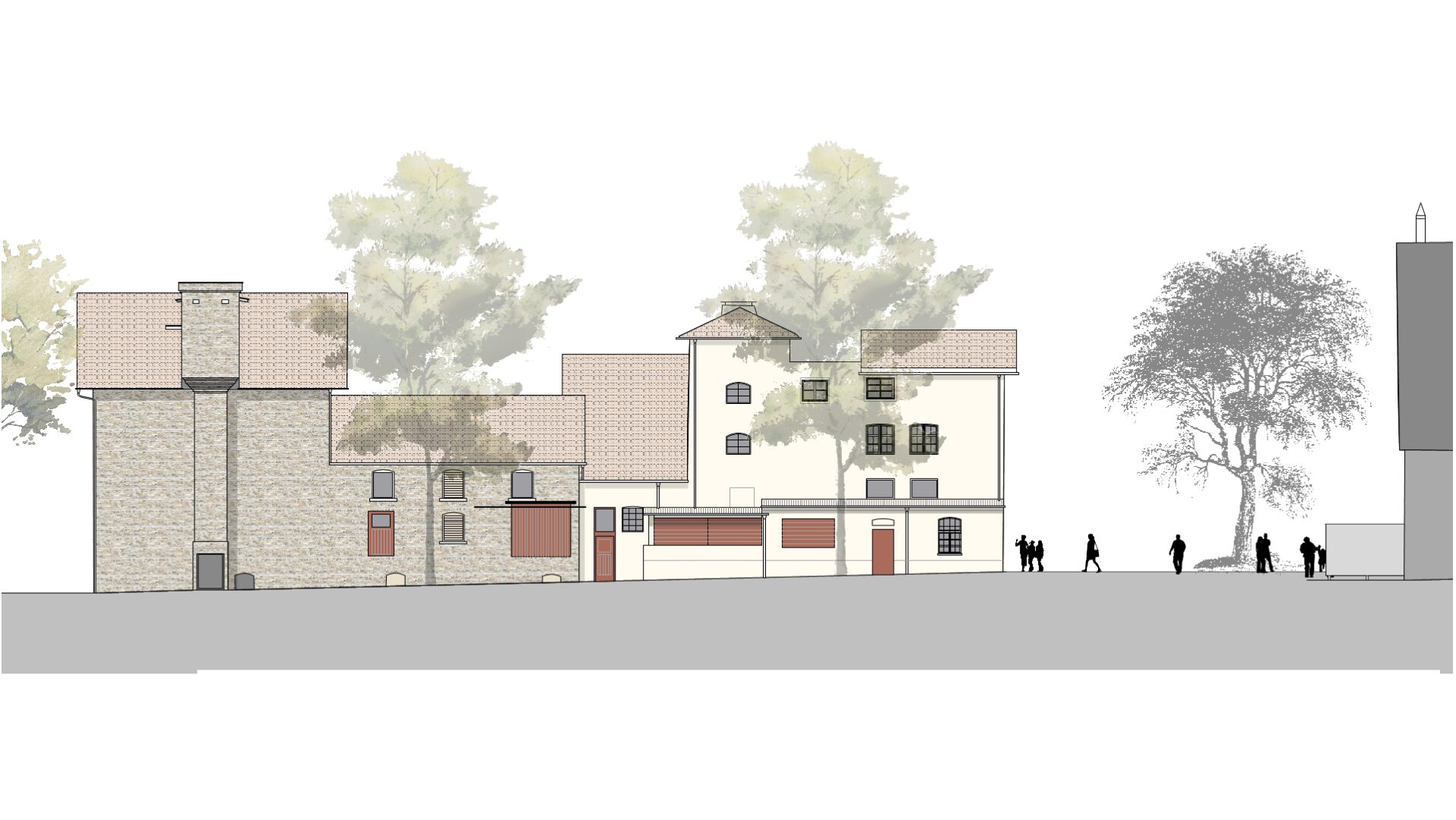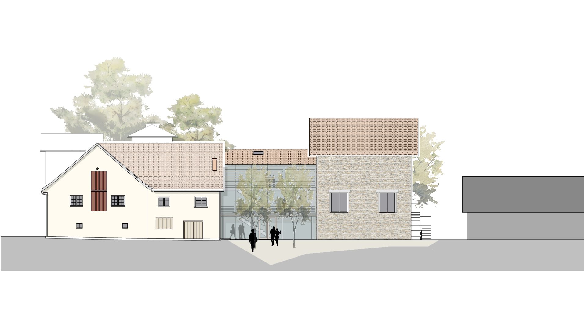Der Neubau eines lichtdurchfluteten Foyerbereichs verbindet das ehemalige Brausudhaus mit dem historischen Eisturm und bildet einen repräsentativen Haupteingang mit großzügiger Vorplatzsituation.