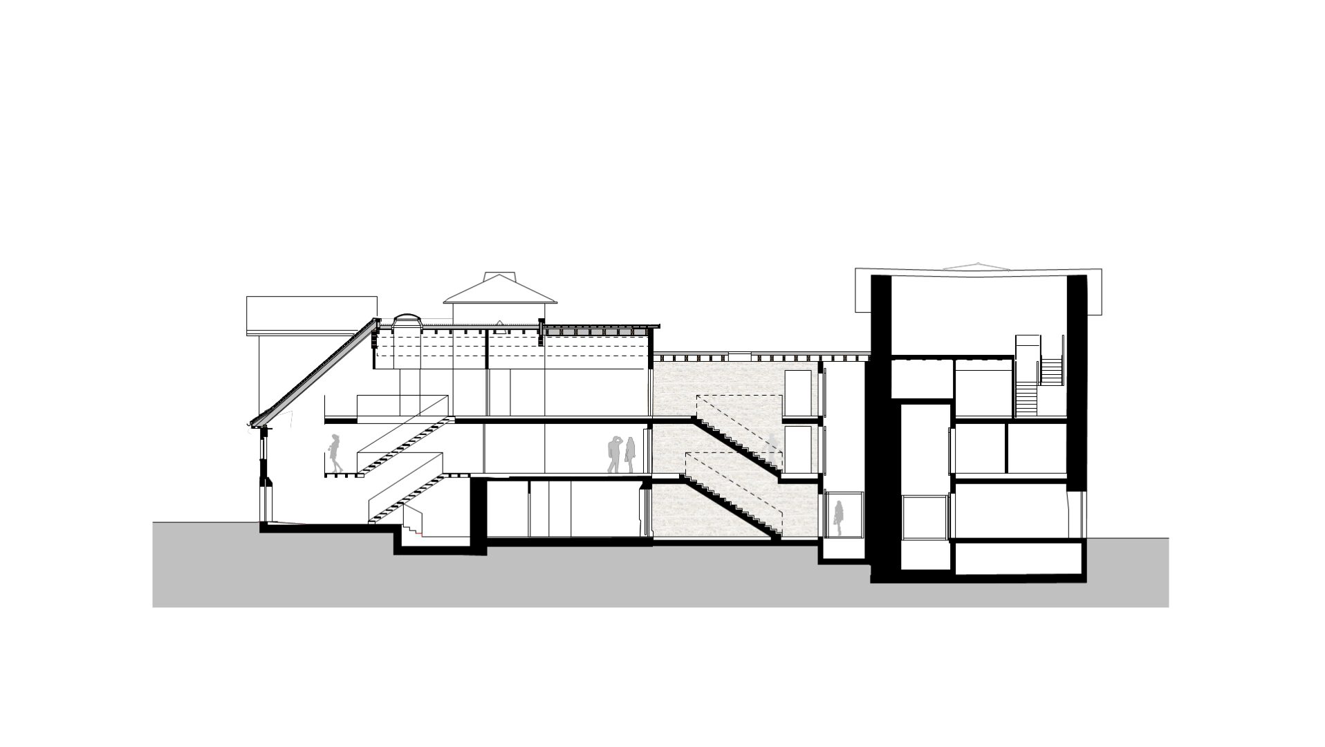 Im Inneren gliedert sich das Gebäude in mehrere Ebenen, die einen reibungslosen Ablauf auch parallel stattfindender Veranstaltungen ermöglichen. Die einzelnen Raumabfolgen verfügen über eigene Vorbereiche, die durch Galerieeinschnitte spannende Blickbeziehungen und visuelle Verbindungen zwischen den Ebenen schaffen.