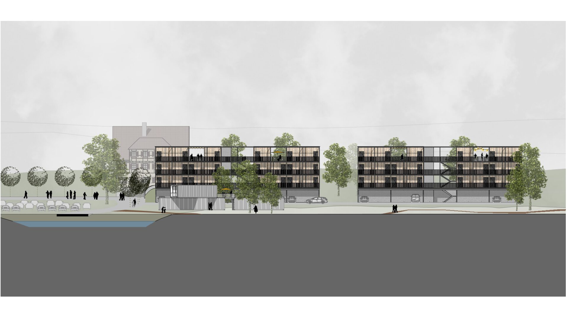 Durch serielle, vorgefertigte Holzelemente wird eine ressourcenschonende Bauweise ermöglicht, während Maßstäblichkeit, Kubatur und Materialität bewusst auf den Landschaftsraum und das historische Ensemble reagieren.